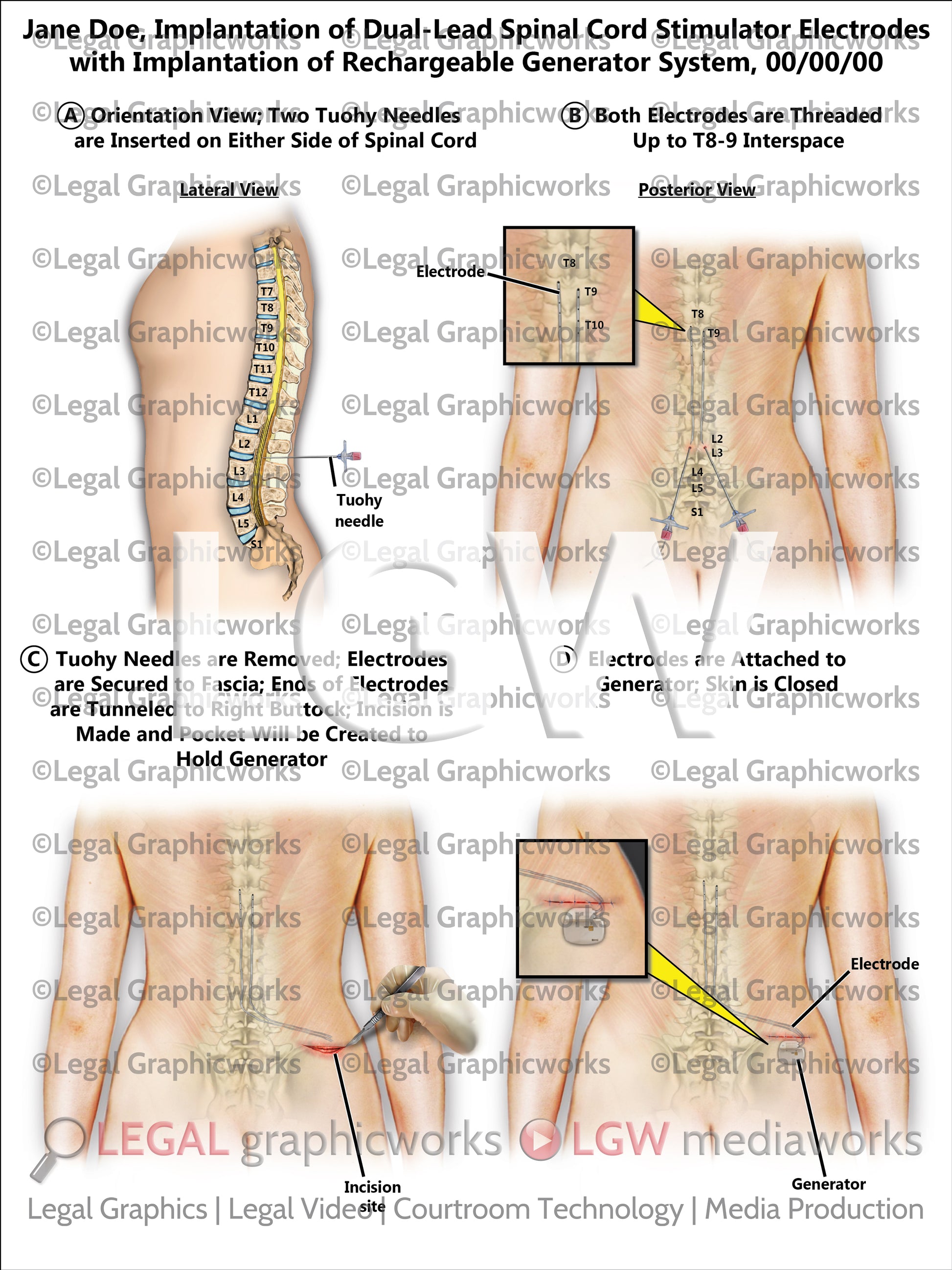 Implantation of Dual-Lead Spinal Cord Stimulator Electrodes with Implantation of Rechargeable Generator System