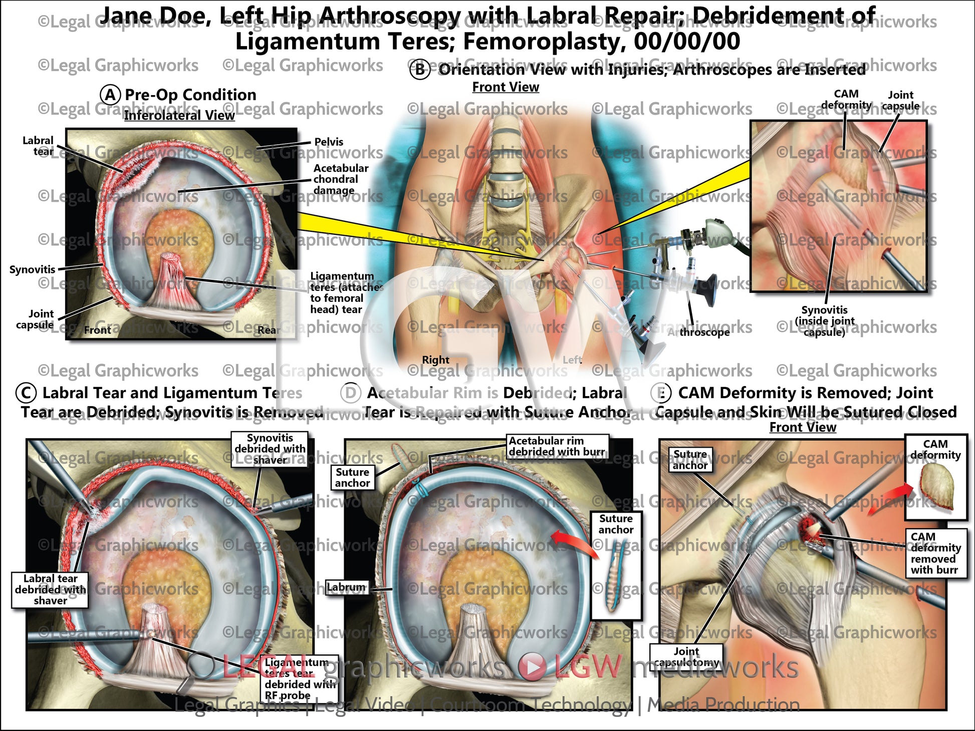 Left Hip Arthroscopy with Labral Repair; Debridement of Ligamentum Teres; Femoroplasty