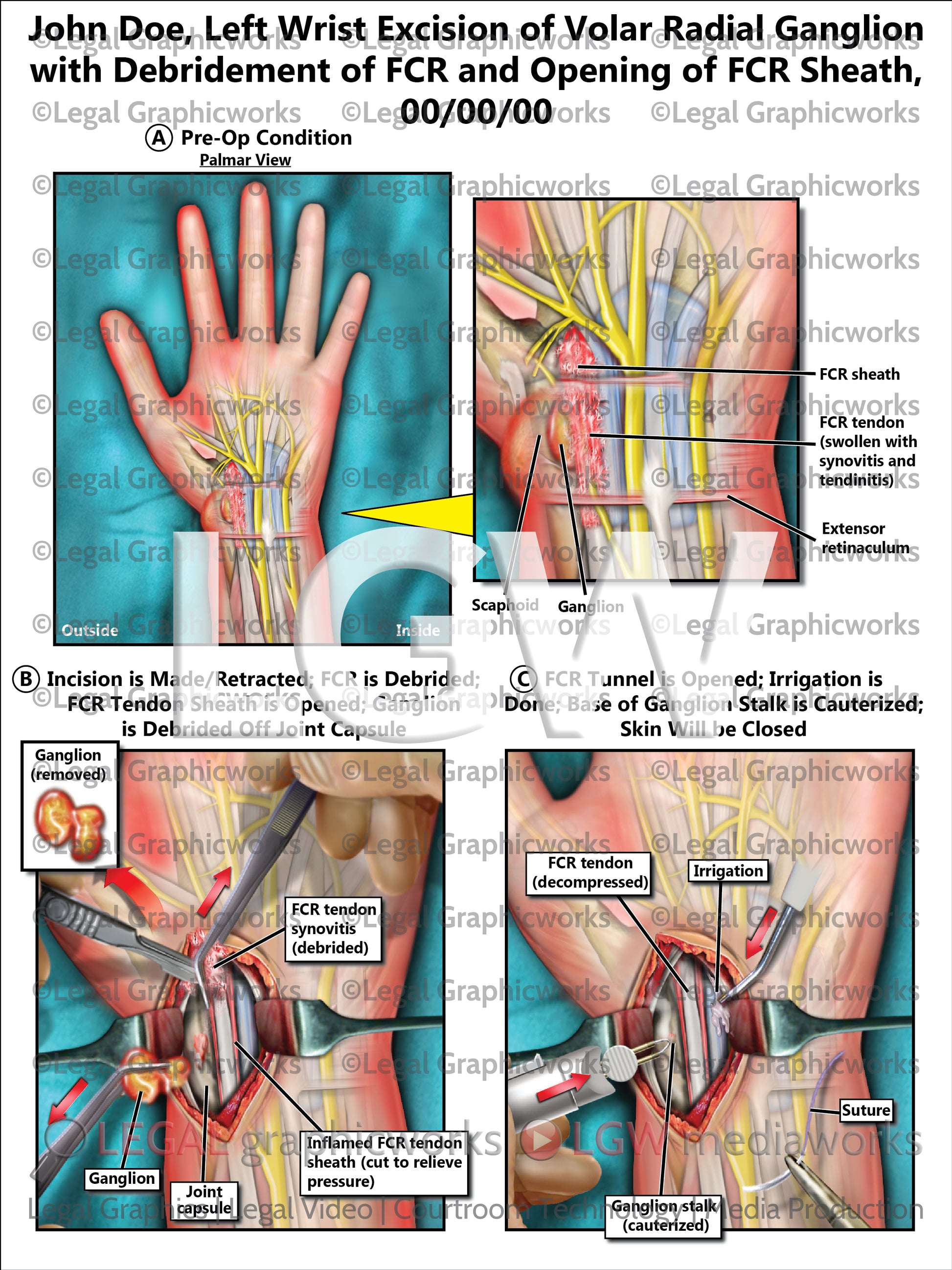 Left Wrist Excision of Volar Radial Ganglion with Debridement of FCR and Opening of FCR Sheath
