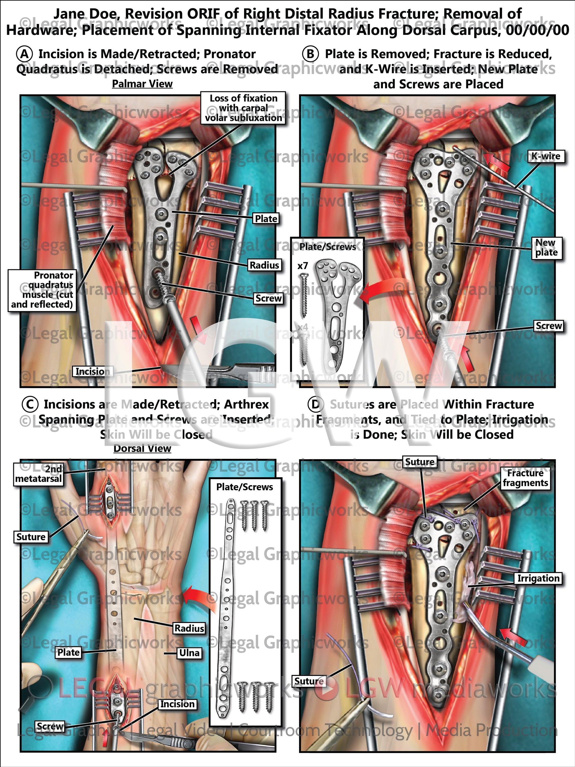 Revision ORIF of Right Distal Radius Fracture; Removal of Hardware; Placement of Spanning Internal Fixator Along Dorsal Carpus